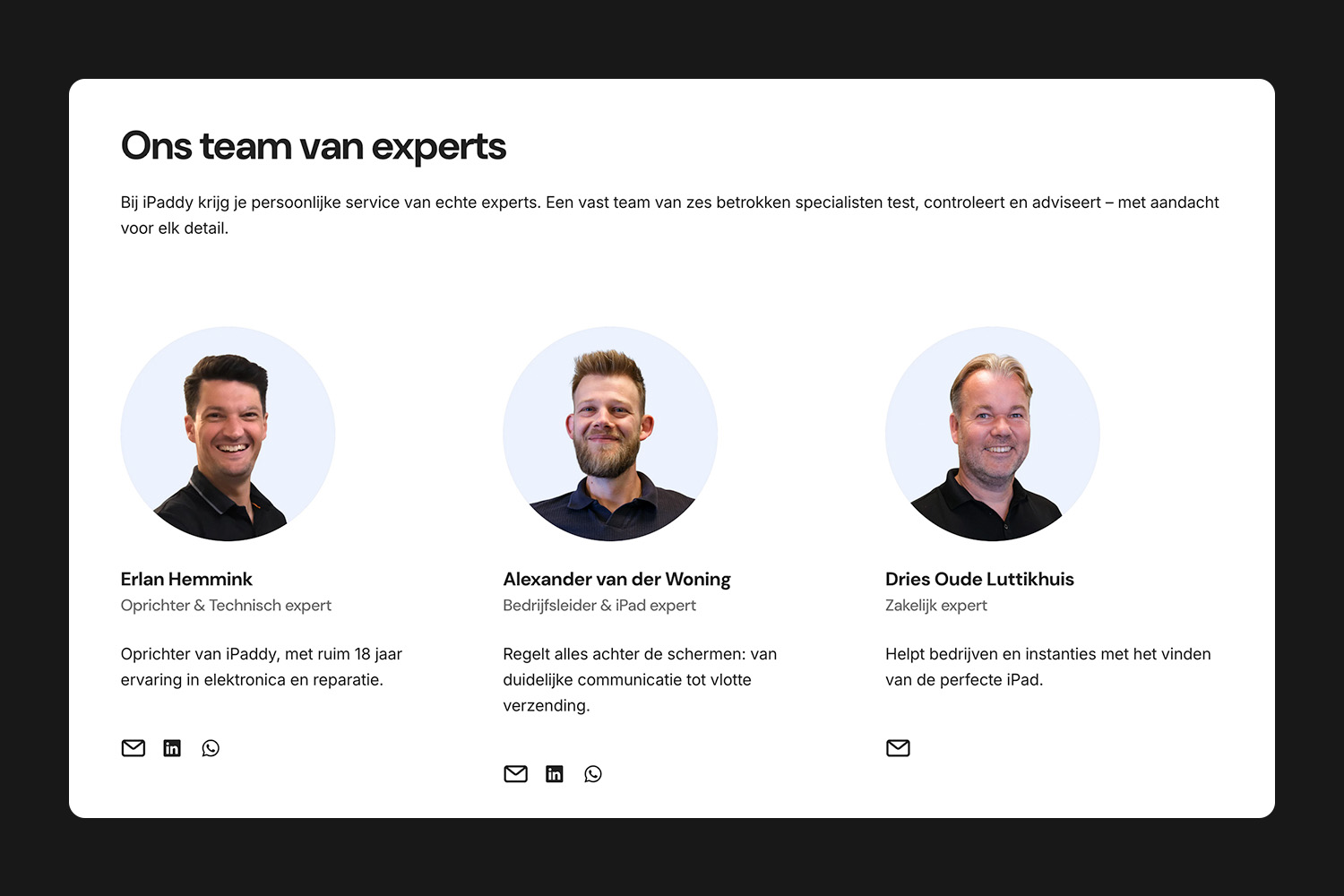 We schreven uitgebreide uitleg en adviezen. Geen marketing-geblaat, maar écht nuttige informatie: welke iPad past bij welk gebruik? Wat is het verschil tussen refurbished grades? Deze kennis verlaagt de drempel om een duur product te kopen bij een relatief onbekende speler.