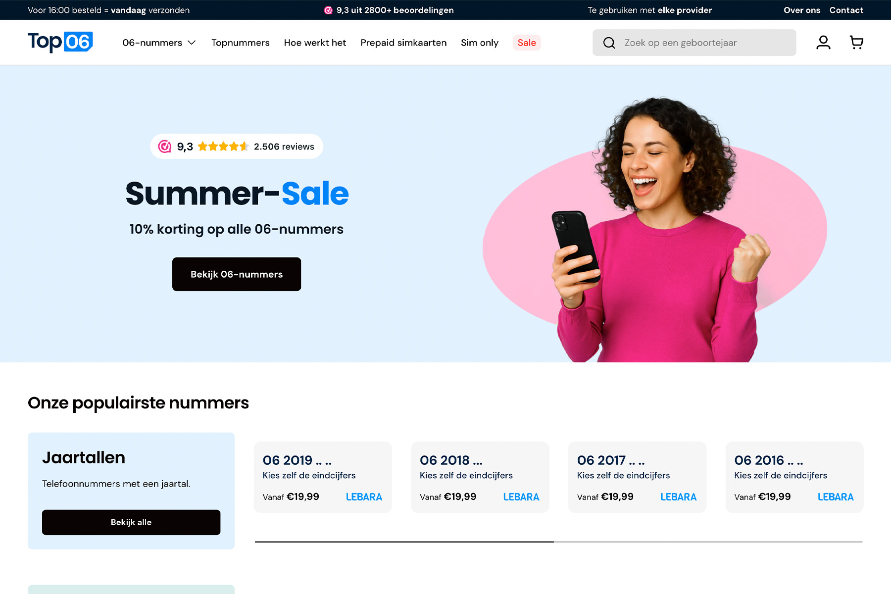 Top06 is een gevestigde naam met duizenden tevreden klanten. Toch voelde hun online aanwezigheid niet zo. De oude webshop was verouderd, onpersoonlijk en miste de professionele uitstraling die paste bij hun status als marktleider. Het sociale bewijs, zoals de 2500+ positieve reviews, was bijna onzichtbaar.
